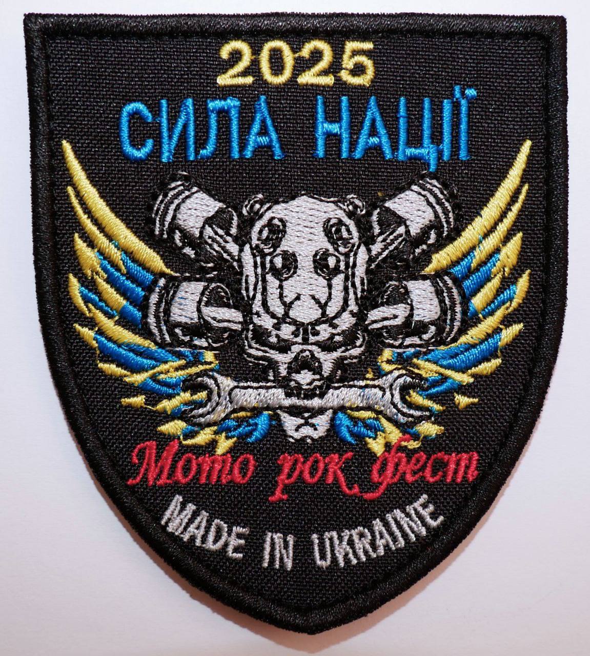 | Текст | «2025», «Сила Нації», «Мото рок фест», «Made in Ukraine» |